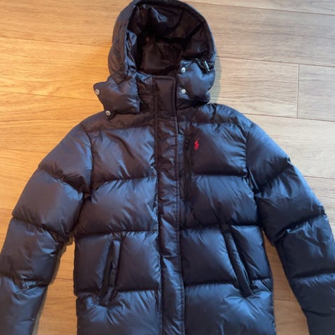 Ralph Lauren jakke som jeg har hatt ett år! Veldig god og varm. Jeg er strl Small men bruker en large i vinterjakker fordi jeg liker at de er litt ekstra varme og har plass til en genser under!💗 Men den går fra Small-Large vil jeg si! Nyprisen er 6700kr