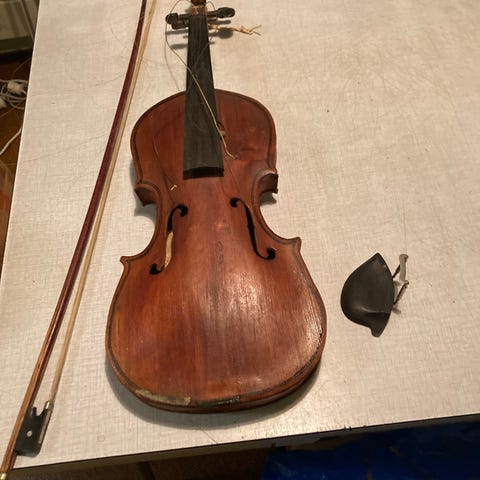 Gammel fele med buen selges.