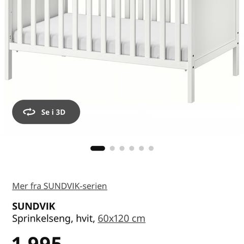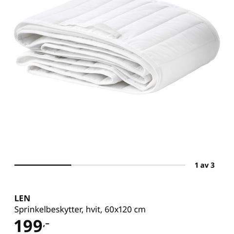 Sprinkelsengbeskyttelse fra Ikea. Knapt brukt, har vært i gjesteseng. Passer til 120 x 60-seng.