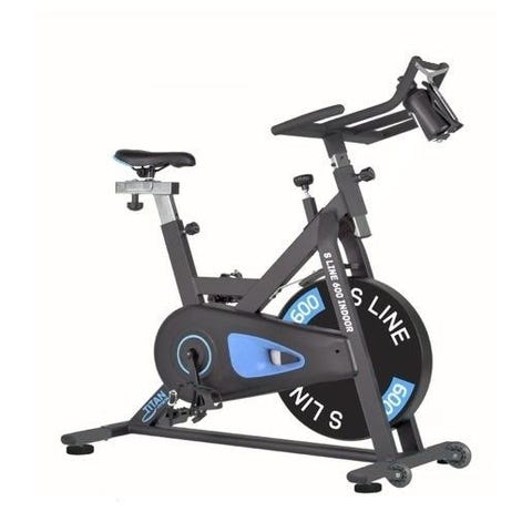 Titan Life Spinningsykkel i svart farge. Utstyrt med justerbart sete og styre for tilpasning ved trening. Inkluderer digitalt display for overvåking av treningsdata. Egnet for innendørs trening og kondisjonsøvelser.