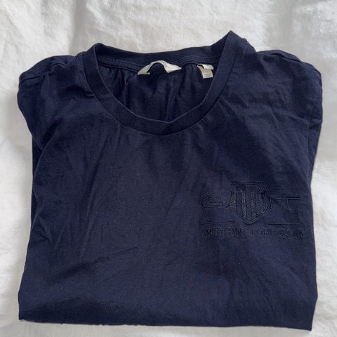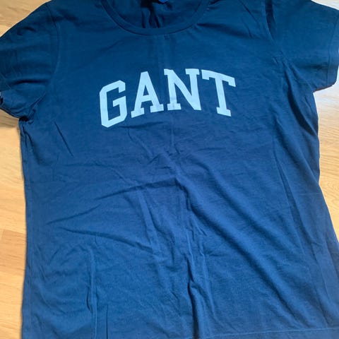 GANT T-skjorte i blå bomull for dame, størrelse M. T-skjorten har rund hals og kort erme, med GANT-logo på brystet.