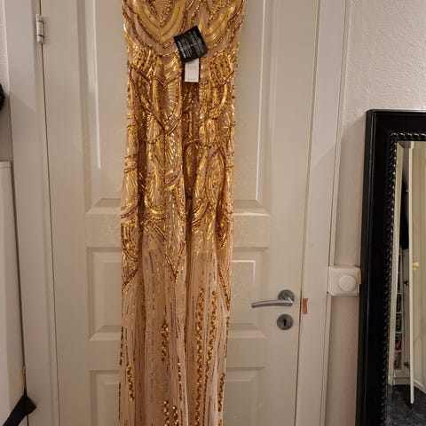 Selger ankellang kjole. Brukt 1 gang, vasket 1 gang. Ingen skader. Stoffet er tungt og faller fint ned, kan snøres inn like under brystpartiet for å få en markering.