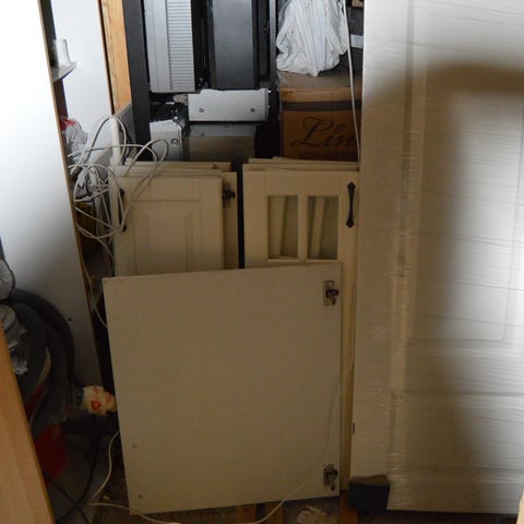 Ulike kjøkkenskap og innerdør i tre