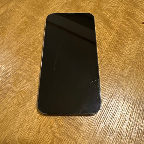Telefonen har en skjerm med en liten skade i hjørnet (se eget bilde).