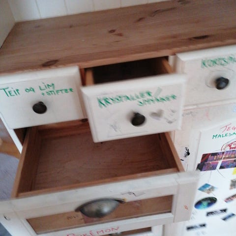 Skap fra Bestå. Hvit høyglans. Ingen bruksmerker. Noen dører er skjeve, men kan justeres.