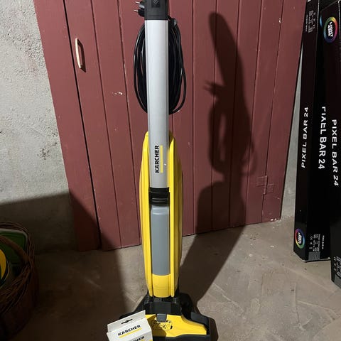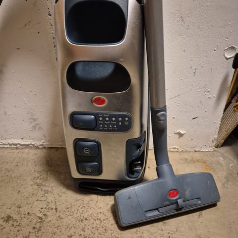 Støvsugeren har fått nye filtre, og ny pose er satt inn. Medfølgende slange og vanlig munnstykke for gulv og tepper.