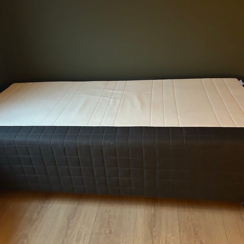 Veldig pent brukt rammemadrass fra IKEA. Kun brukt i 1,5 år av en liten jente. Overmadrass fra Jysk følger med om ønskelig. Vi har alltid brukt madrassbeskytter oppå 🌸 Vi har på noen korte ben fra IKEA, men de kan lett byttes ut til høyere.