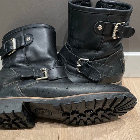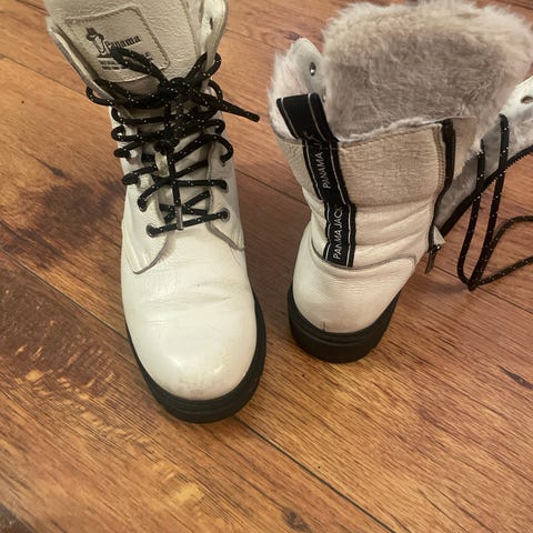 Selger Panama Jack snøreboots I ekte skin. Den ene skolisser er lit utslitt, selger derfor billig.