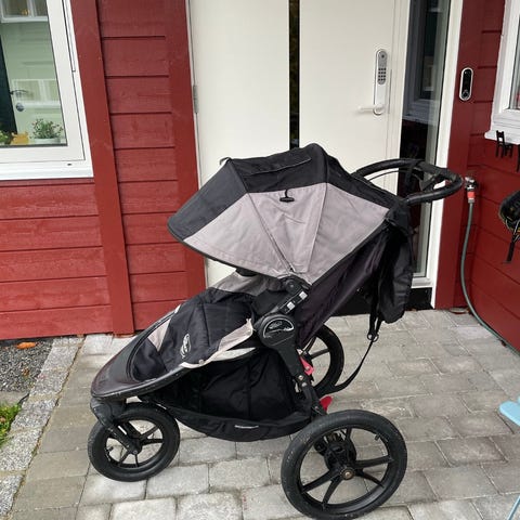 Kombinert jogge- og barnevogn. Alltid lagret inne.