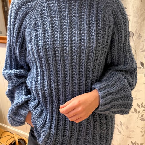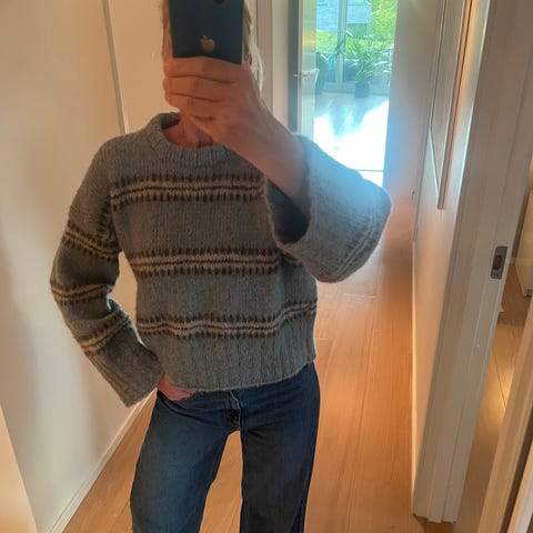 Håndstrikket rundfelt genser med Selbu-inspirert diamantmønster selges. Genseren er helt ny og aldri brukt. Den er strikket for hånd med mye omtanke og godt håndverk. Veldig fin genser som fortjener å bli brukt!☺️