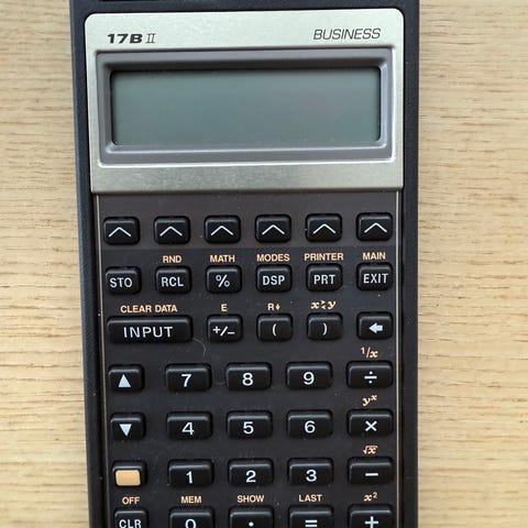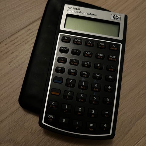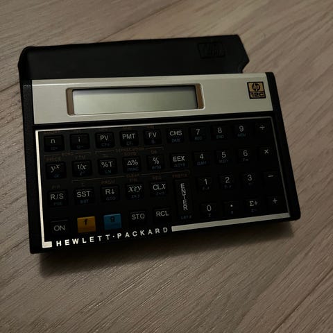 HP 10bII+ kalkulator med medfølgende etui. En bærbar kalkulator som passer til økonomiske og finansielle beregninger.