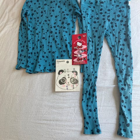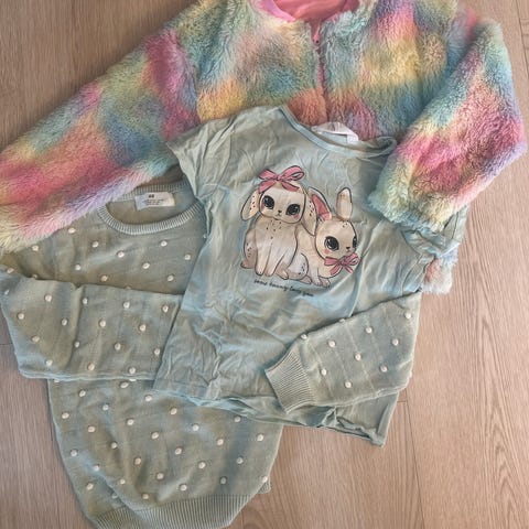 Bukse (litt utsvingt/«sleng») str 122 (6-7 år), jakke 122/128.