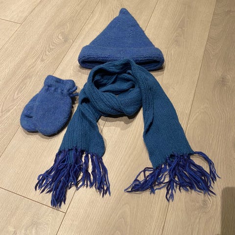 Pent brukt av ett barn. Rent, pent og feilfritt så vidt jeg klarer å se. Røykfritt hjem. Settet er i supermyk velour og stilig satengdetalj inni hetten. Skikkelig kosesett.