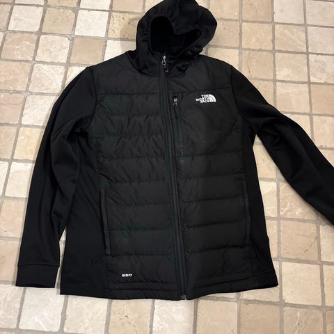 The North Face jakke i størrelse M, laget av dun og i fargen rød. Jakken er designet for menn og egner seg til utendørs bruk.