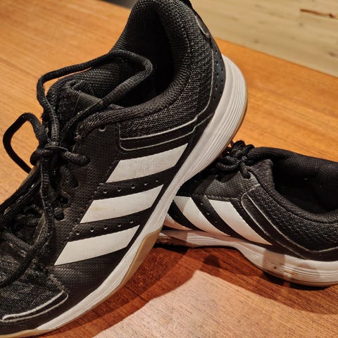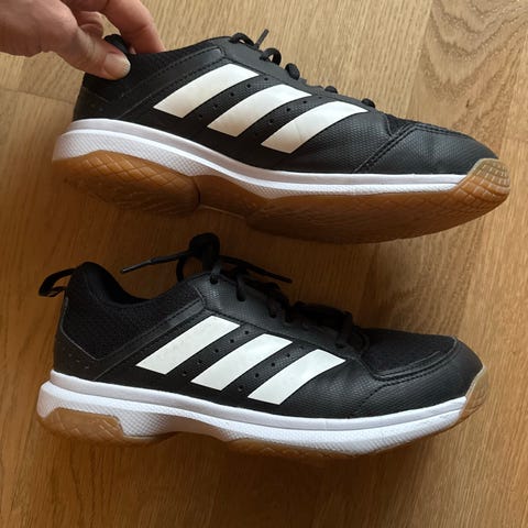 Adidas innesko i hvit farge, størrelse 38 + 2/3. Skoene er designet for ulike sportstyper og har en lys gummisåle egnet til innendørs bruk.
