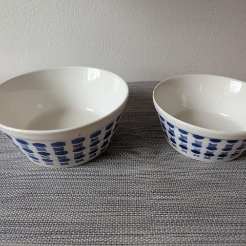 Fire vakre små porselensboller/skåler med marokanskinspirert mønster. Alle har ulikt mønter. De er ikke brukte.