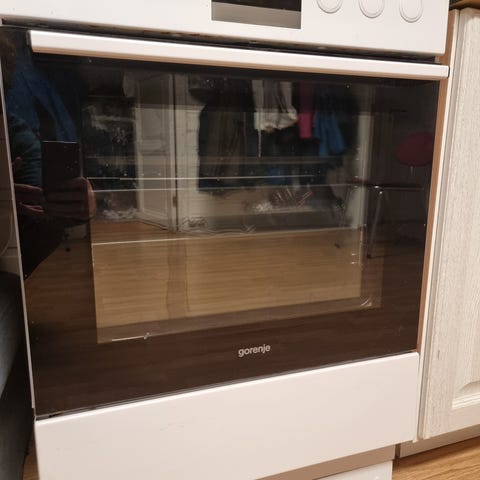 Gorenje keramisk komfyr i hvit farge. Komfyren har keramisk kokeplate og ovnsfunksjon. Utstyrt med manuelle betjeningsknapper for temperatur og funksjonsvalg.