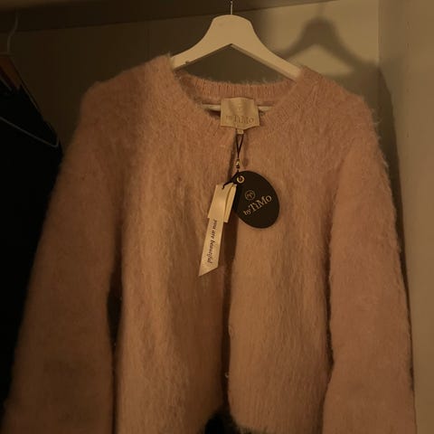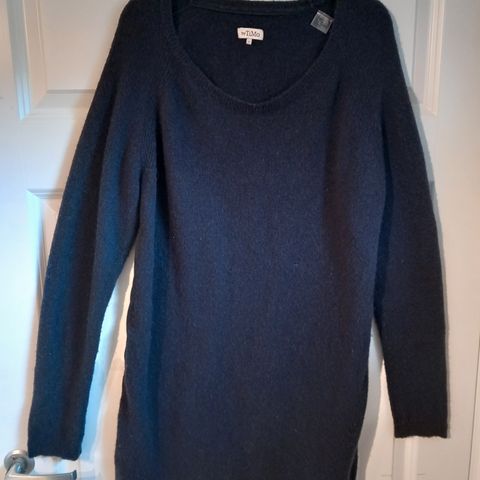 byTiMo Alpakka strikket kjole i størrelse L, laget av 87 % alpakkaull og 13 % polyamid. Genseren har en beige farge og har i tillegg skulderputer. Disse kan lett tas bort.