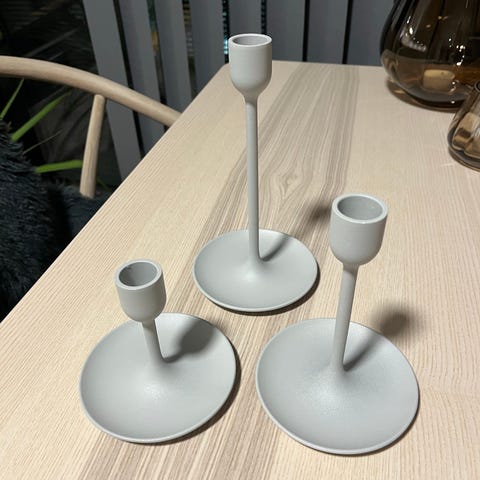 IKEA lysestaker i svart metall, sett med 3 ulike størrelser. Designet for å holde standard lys og egnet for dekorativ bruk i hjemmet.