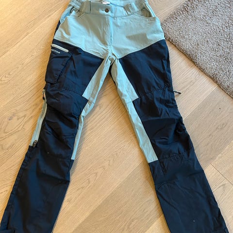Bukse str 38 -en liten sort flekk på kne, se bilde. Glidelås på begge føtter, to lommer.