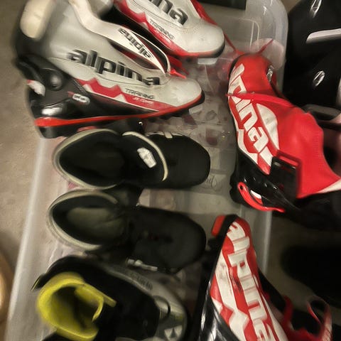 Brukte skisko selges billig. Har kjøpt dem brukt, men ikke brukt dem noe særlig selv pga feil størrelse. De er hele og fine, men litt bruksmerker.