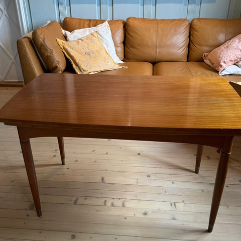 Pent rundt bord, mahogny, trolig fra tidlig 1900-tallet. Klassisk utforming med sentral søyle og tre buede ben. Solid konstruksjon med fin patina og normal bruksslitasje som gir bordet karakter. Bordet måler 120 cm i diameter og er 59 cm høyt.
