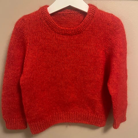 Hjemmestrikket Isla genser til barn ca str 4-6 år.