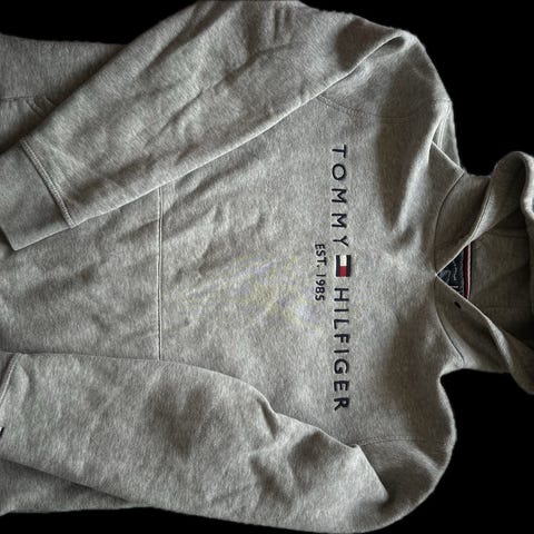 Tommy Hilfiger hettegenser i størrelse S, laget av bomull. Genseren har en blå farge og er designet for menn. Den har hette med snøring og en frontlomme.