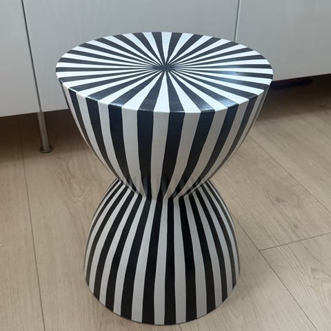 Pidestall/sidebord. Hjemmelaget, i heltre. Kontaktplast rundt, denne er enkel å ta av om man vil bytte eller eventuelt male den i ønsket farge.