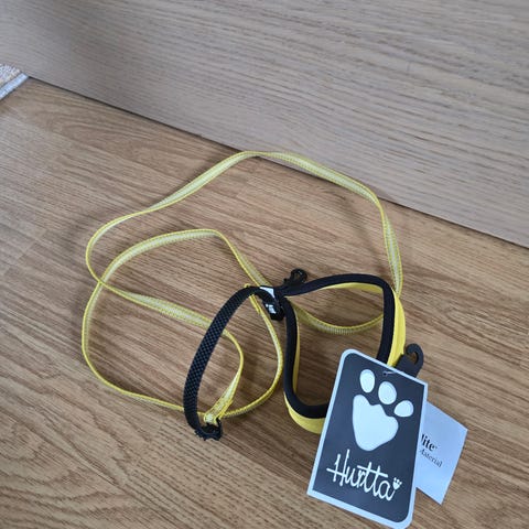 Hurtta sele i mørk blå størrelse M (56-69cm) og hurtta bånd (1,5 cm x 200cm).