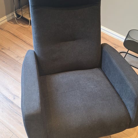 Tina 11 Light Grey hvilestol medium med sving, regulerbar rygg og fotstøtte. Stolen har et lett grått stoff og er utstyrt med børstet stål og slimline aluminiumsdetaljer.Ikke synlige merker fremstår som ny.