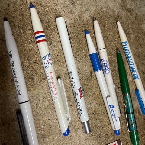 Solo reklameartikler. 3 stk penner hvor 2 er i etui. Den til høyre i etui er tørr. Ellers virker de. Lite brukt. Flaskeåpner med ulike motiv på hver side. Som ny. Nøkkelring med 3 nøkkelholdere. Disse kan tas av ved behov. Pent brukt. Materiale er plast. Samlerobjekt. Selger samlet. Sendes mot porto.