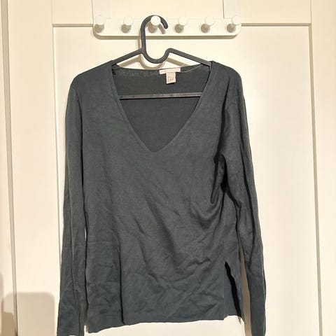H&M genser i bomull, størrelse M, hvit farge. Genseren har en strukturert strikket design og langermet modell. Passer for kvinner.
