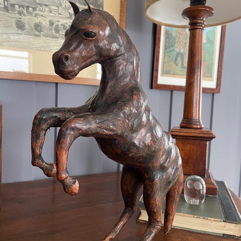 Svart hesteskulptur i metall