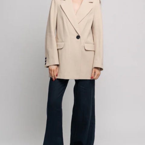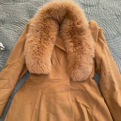Kåpen er dobbelseng og har skrå lommer i sidene. Den er foret.