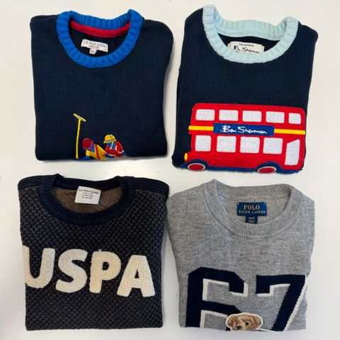 Polo ralph lauren tskjorte str. 5, pique str. 4 og 2 singletter str. 4, men passer nok best 98/104.