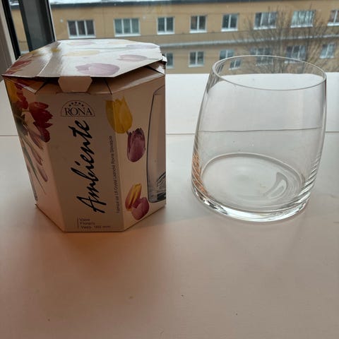 Hadeland Glassverk vase laget i klart glass. Vasen har et enkelt og tidløst design. ( Har ikke esken...).