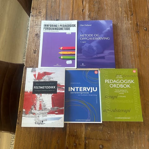 Selger pensum til metode og etikk. Begge bøkene ble kjøpt nye i 2025 og er i god stand. Ingen markeringer eller synlige bruksmerker.
