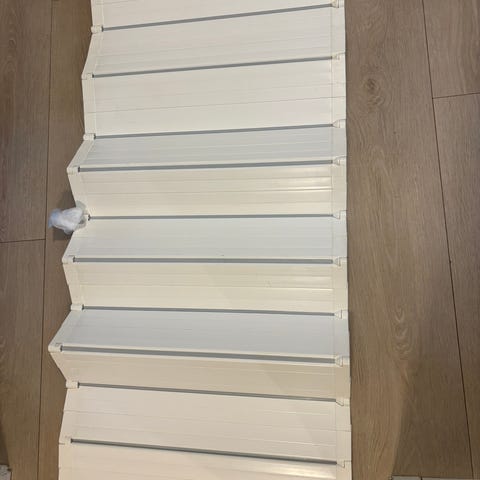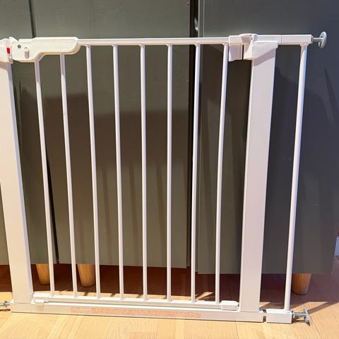 Praktisk trappegrind som kan justeres ut fra bredden på døråpning. Kan også brukes i åpninger som er forskjøvet ved at den stilles på skrå. Se linken nedenfor for mer informasjon.