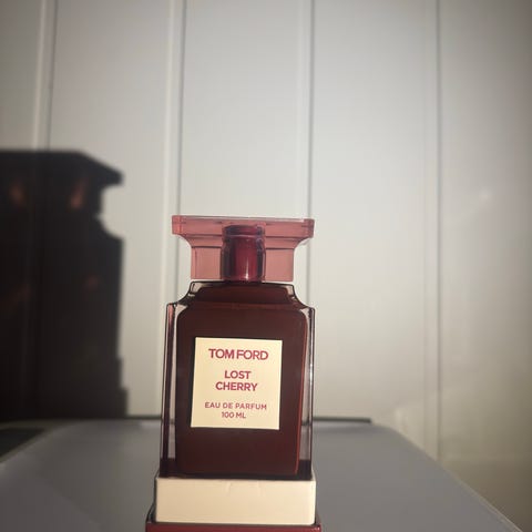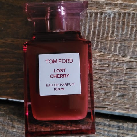 Tom Ford Lost Cherry Eau de Parfum med en volum på 100 ml. Parfymen kommer i en rød flaske og eske.