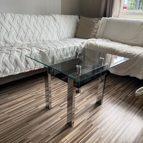 Nydelig glassbord selges... Røkfarvet og svart med spesielle ben dekket med sort skinn...Pris kan diskuteres.....