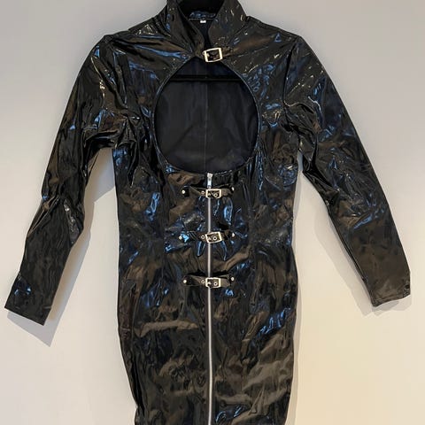 Sort Lakk kjole med korsett snøring bak i tykk lakk