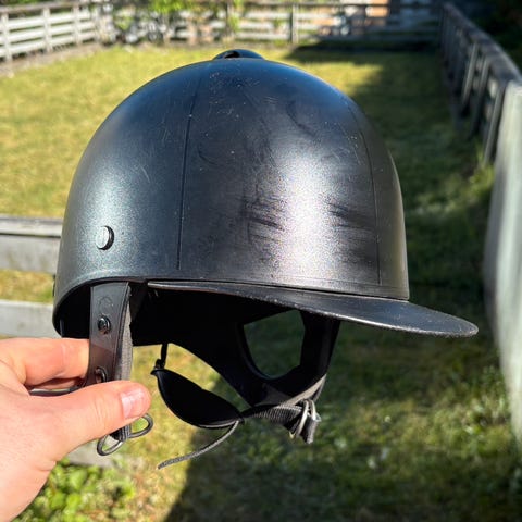 Ridehjelm brukt av jente 9 år. Har ikke vært i noen ulykker.