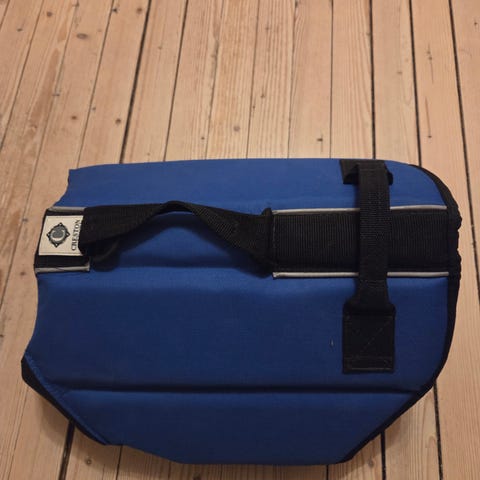 Selger en redningsvest til hund, brukt på en Jack Russell Terrier