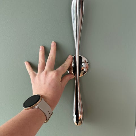 Vegghengt skohorn, festet av magnet. Selger den i fargen cream da den ikke passet så godt inntil vegg fargen. Se bilde 2, av den svarte for å se hvordan den henger på veggen. Det er kun den ene i fargen cream som er til salgs