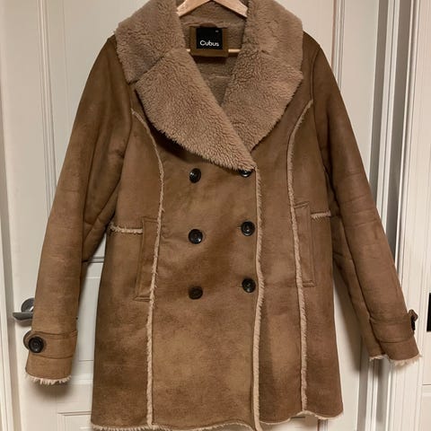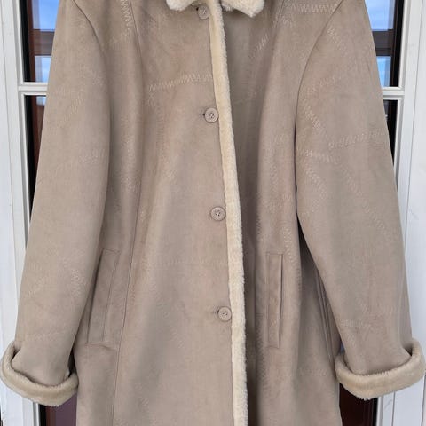 Veldig fin jakke og varm og god.Beige utenpå og råhvit inni