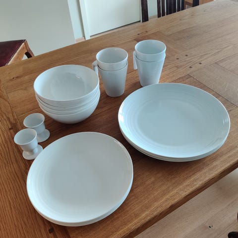 Bestikk, glass, kaffekopper, skåler som ikke blir brukt selges.