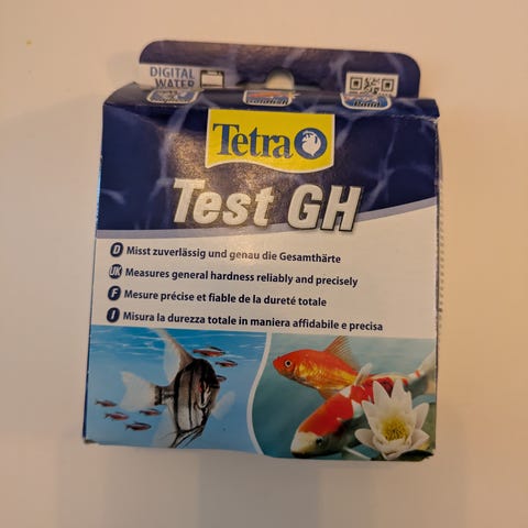 Tetra Test GH vannkvalitetstest for akvarievann. Inneholder testutstyr og dråpeteller for måling av generell hardhet (GH), PH og NO2. Produktet er egnet for akvariebruk for å sikre riktig vannkvalitet.