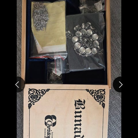 Fullt sølv følger med i originale boksene. Sko i str 40 følger med ved ønske om du har samme sko str. skjorten er kjøpt på sparkjøp pga endring i størrelse og har fått sydd på ettertid like hull i skjorten til å ha søljene på håndleddene på denne nye skjorten også som den originale som jeg ikke har lenger pga den var i str 38/40.