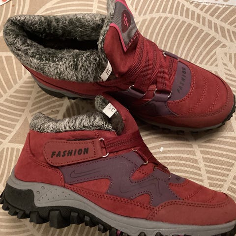 Helly Hansen høye vinterstøvler i brunt lær (litt "røff" stil), størrelse 41. Kun prøvet tur-retur bilen da de ikke falt i smak hos tenåringen... Støvlene har snøring og er foret med et varmt, "pusete" materiale for isolasjon. Yttersålen har mønster for godt grep. Perfekte for kaldt vær!